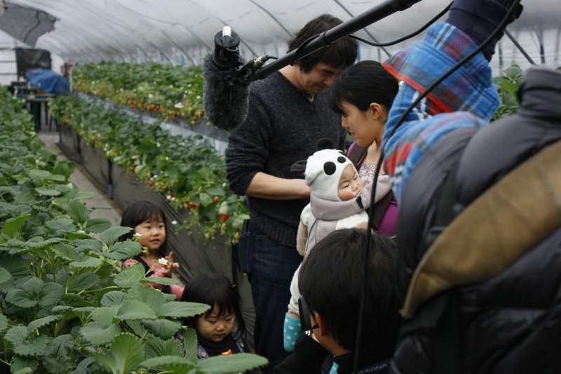全国ネットのニュース番組で、山武市成東の苺狩りとして、当園で取材が有りました。今年はイチゴのスイーツが流行だとの事で、栽培農家の様子と今年のイチゴの出来具合のインタビューでした。苺狩りしているお客さまにもコメントしていただき、ありがとうございました。テレビをきっかけに、成東の苺狩りに行ってみようと思う方が、一人でも増えたらうれしいですね。