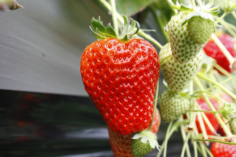 連休中においで頂いた皆様、ありがとうございました。当園では、出来るだけ皆様に楽しんで頂けるように開園の努力をしております。休日には苺狩りが集中するため、とりやすい場所の苺が少なくなる場合もございますが、よく探すと日陰側や、お客さまがあまり通らない通路には完熟イチゴがまだまだなっています。目線を変えて探してみると、おいしい実が見つかりますよ!