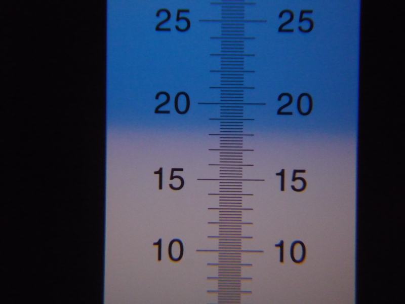 この苺を試しに糖度計で計った所、写真のように苺の先端で18度という表示が出ました。この甘さ、ぜひ味わってみてくださいね。