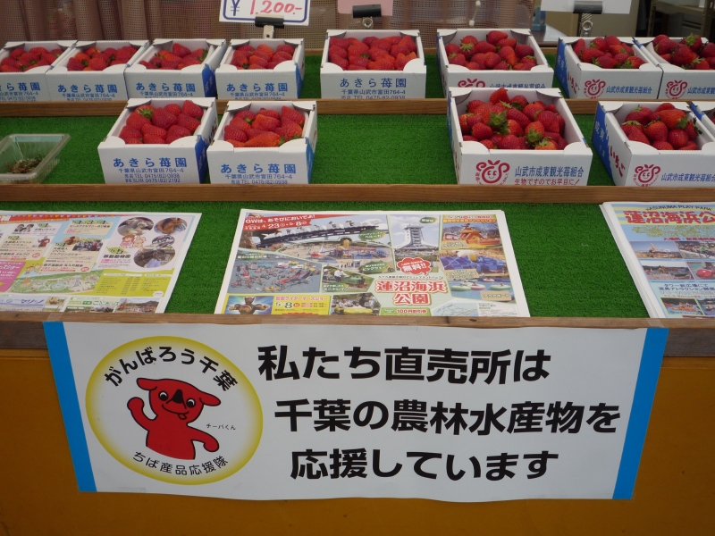 震災の直後で、レジャー気分が出ない方も多いと思いますが、こんな時だからこそ、ぜひリフレッシュしてください。成東観光苺組合ではイチゴ狩りの売り上げの一部を、赤十字に義援金として送ります。みんなでがんばって復興していきましょう。