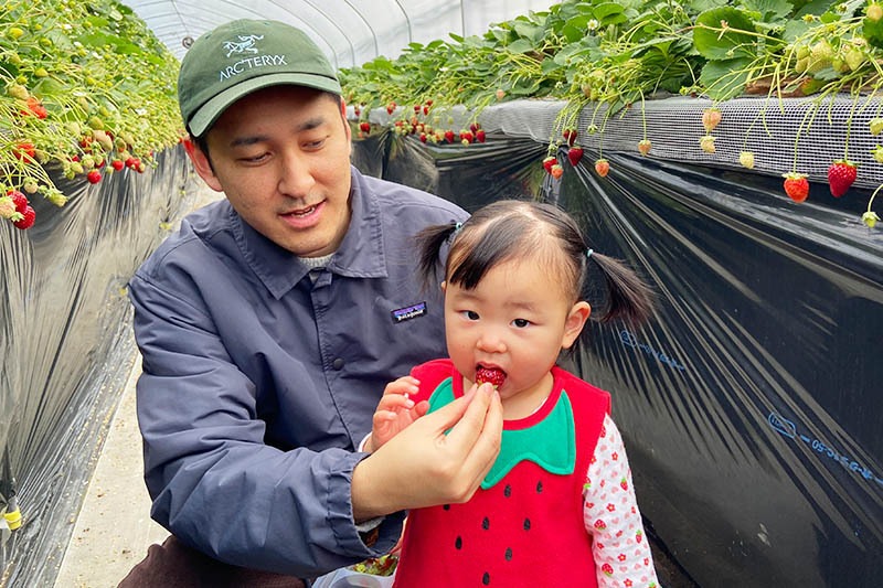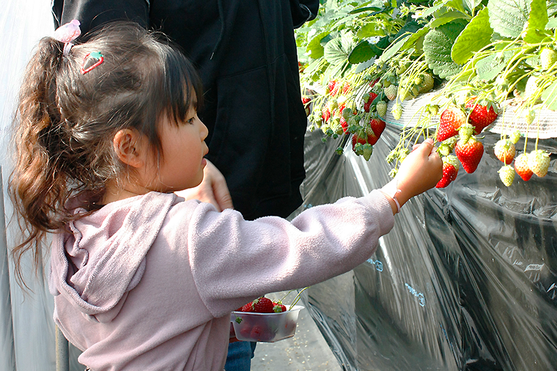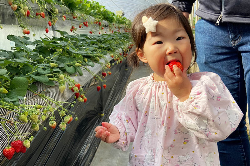 苺狩りは土日祝に合わせた開園から、最近は平日でも開園できる程に苺の量が増えてきました。仕事がら平日お休みの方にも苺狩りを楽しんで頂けますよ。直売の品種も、とちおとめをメインに黒苺やおいCベリーなど販売していますので、お土産にいかがですか?。