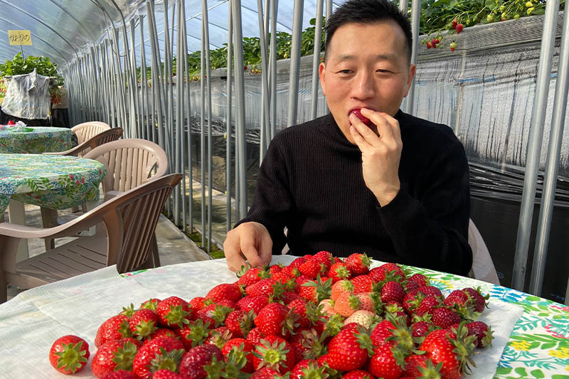 3連休の初日です。ストロベリーロードの苺園は賑わいを見せています。