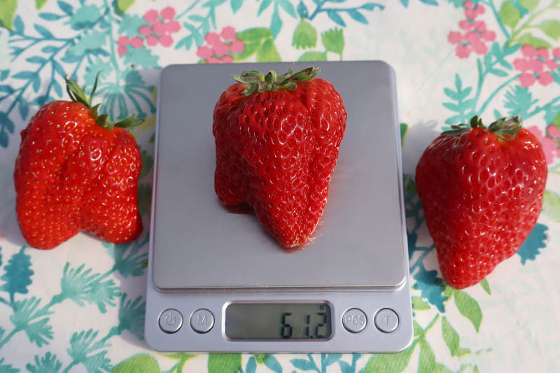 昨晩はザワつく金曜で、桐箱入り超特大苺が1粒何万円という紹介されていましたが、苺狩りをしていれば、それくらいの大きさの苺は見かけるよねーという事で、対抗心を燃やして大粒の探索をしてみました。50グラムクラスはザラにあったので、それ以上を目指して写真を撮りました。